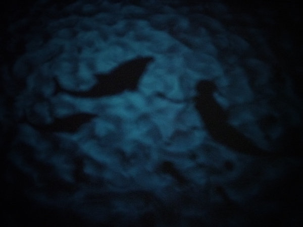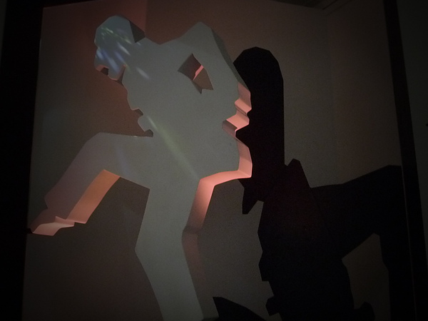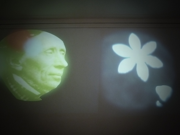 然後像這樣放入投影機裡..剛剛的印花圖案就投射到牆上勒...