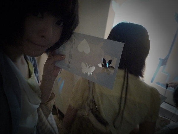解說員教我在紙上壓出印花..看看有小花..愛心..跟蝴蝶圖案...